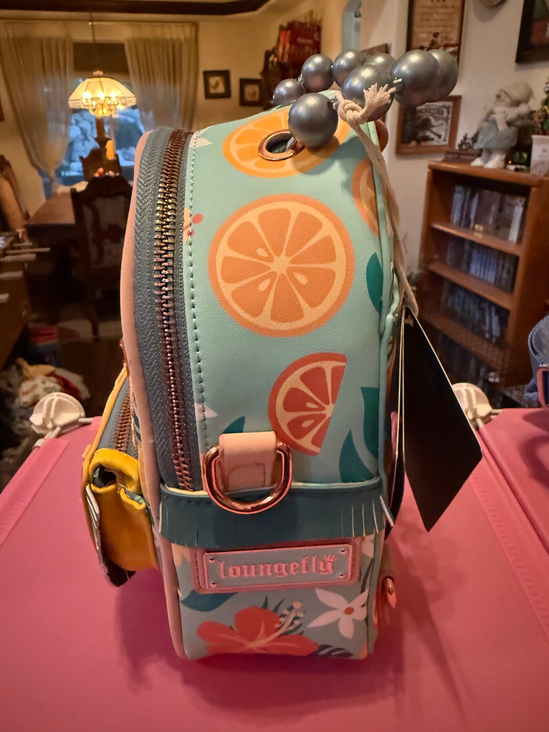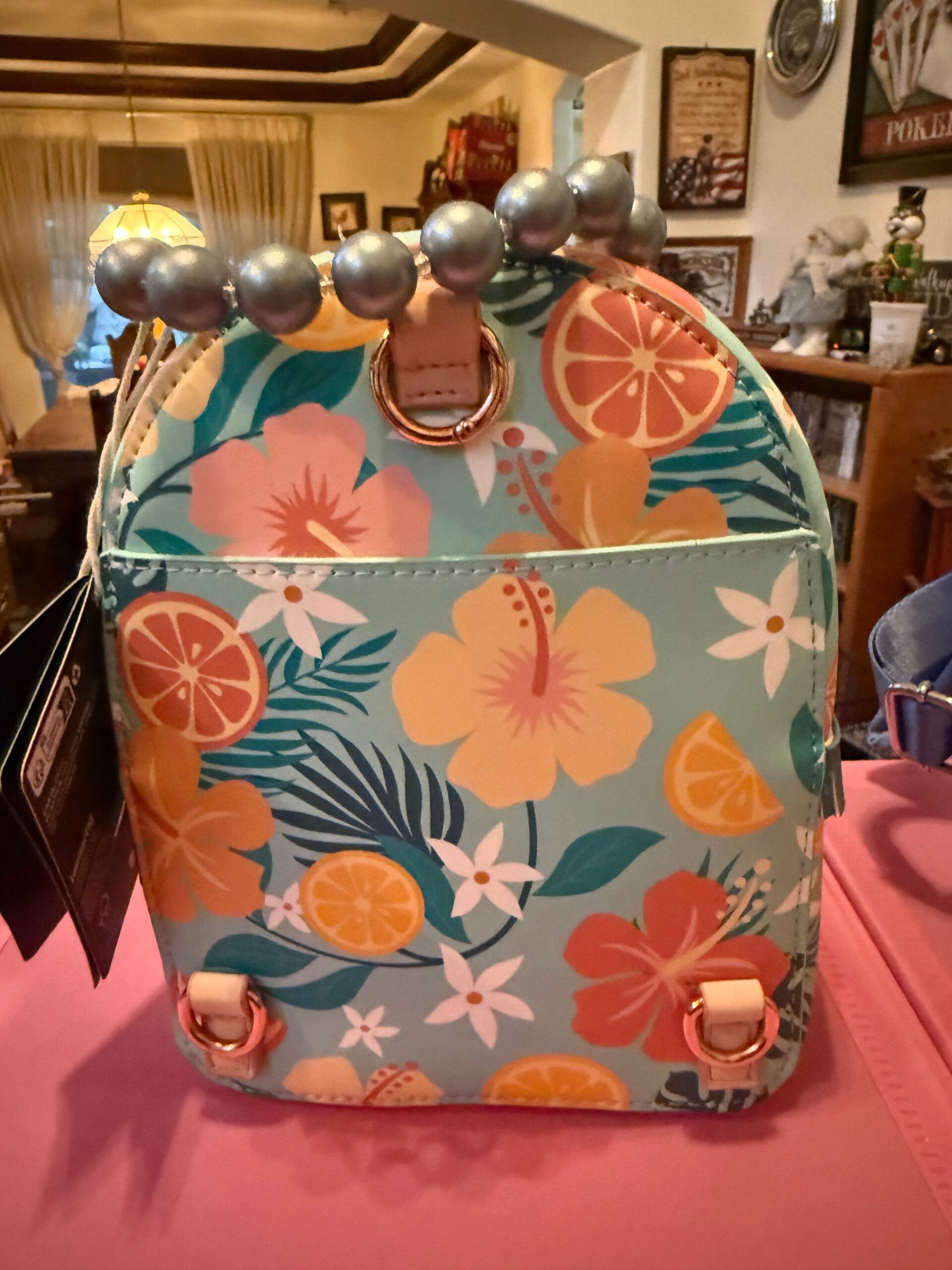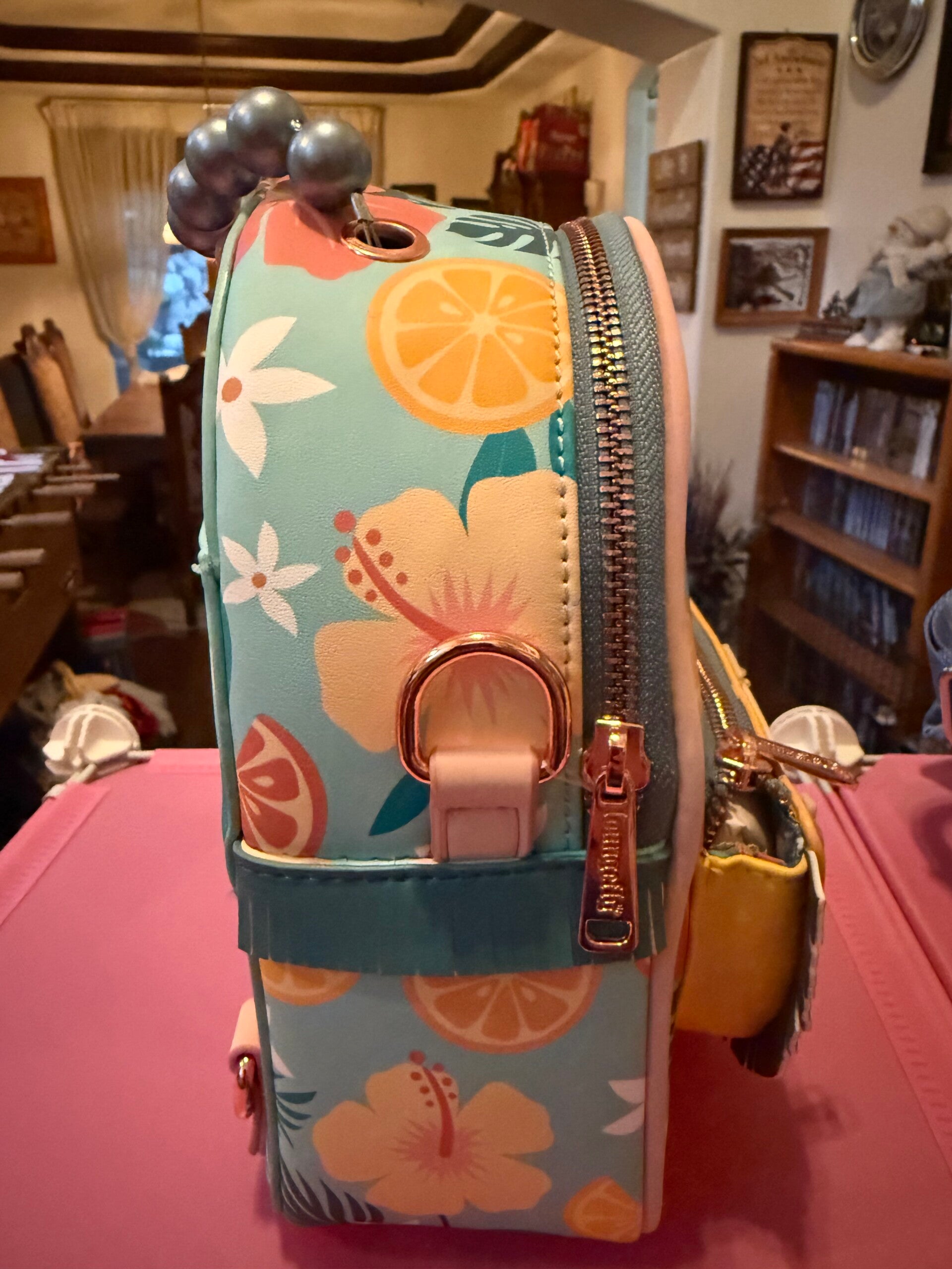 Refresh your look with this tropical mini backpack! With a lemon slice front pocket, this bag features a vibrant print of flowers and fruit.